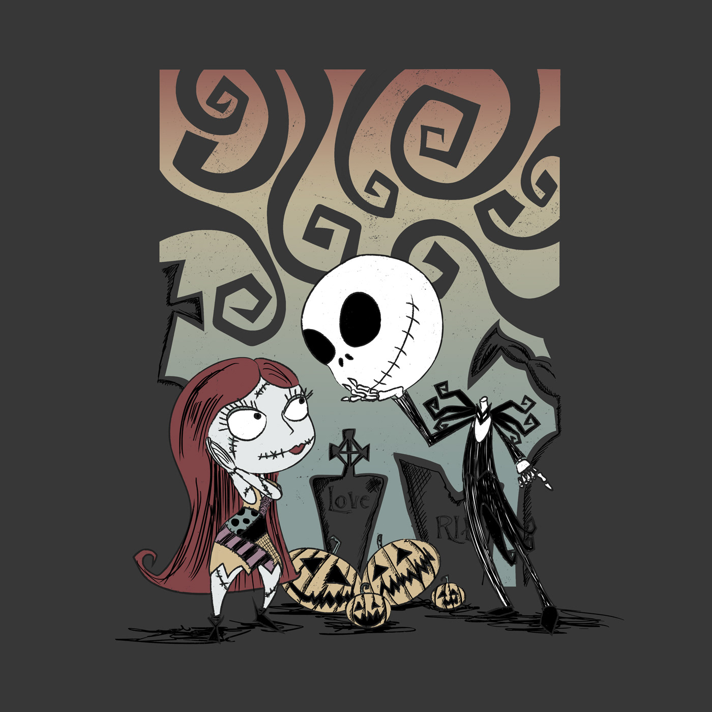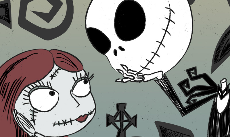 Illustration of Jack and Sally from The Nightmare Before Christmas